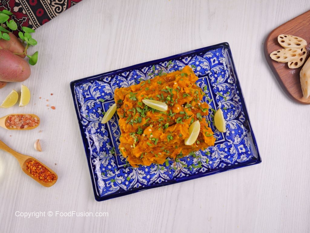 -In same cooking pot, add potato mixture & strained lotus root stem mix gently & cook on medium flame until thickens then add fresh coriander.