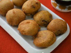 Grease hands with oil,take a mixture and make a flat round balls and coat in prepared gram flour batter.