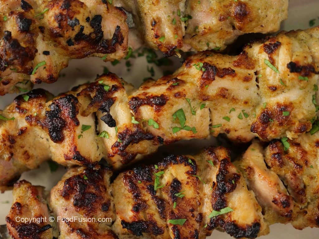 -Put skewers on (burning charcoal) bbq grill and grill from all sides until done & brush oil in between.