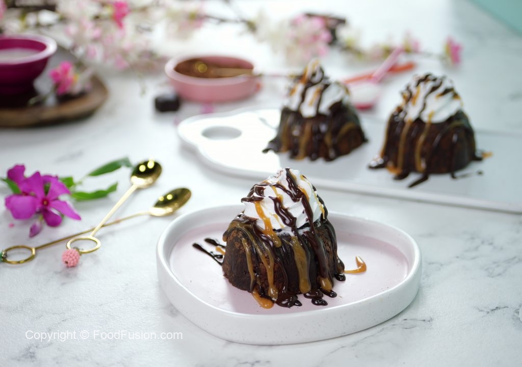 -Brownie bomb ko cling film sa remove ker ein aur serving plate per invert ker lein.