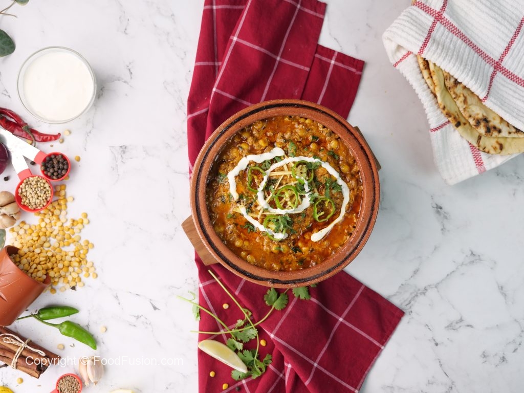 -Tayyar chana daal qeema dal dein,hara dhania,adrak,hari mirch aur cream dal ker serve karein!