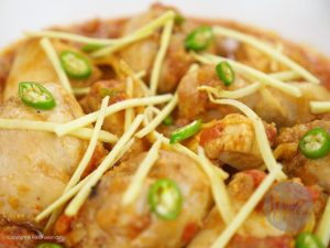 -Add prepared badami chicken,garnish with fried almonds,fresh coriander,ginger & serve!