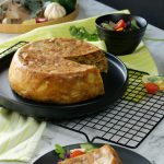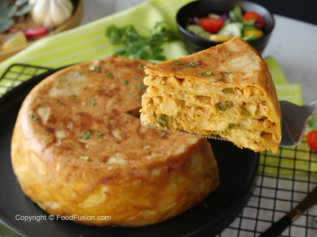 -Spring roll pastry ko anday ka mixture mein dip karein aur layers laga ker chicken tikka filling cheddar cheese & mozzarella cheese dal dein.Repeat 2 layers of roll sheet & filling.
