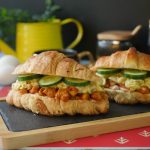 Tayyar mayo sauce,chicken tikka cubes,cheese slices,tayyar scrambled eggs aur kheera slices aur top per croissant rakh dein (makes 3-4).