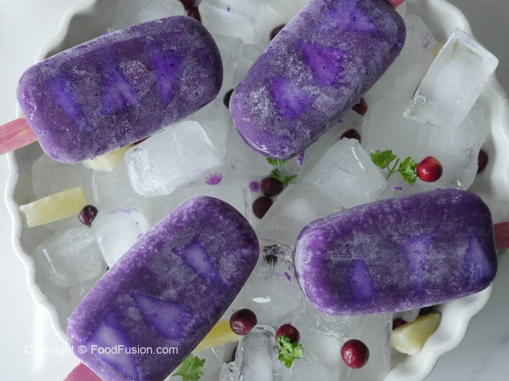 Ice pop molds mein pineapple chunks rakh ker tayyar puree dal dein aur pineapple slice rakh dein aur solid hunay tak freeze ker lein (8 hours).