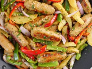 -Red bell pepper,Shimla mirch,pyaz,fried aloo aur fried kababs dal ker ache tarhan mix ker lein.