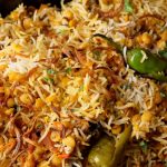 Add fried onion,boiled rice,fried onion,fresh coriander,mint leaves,green chilli,orange food color,kewra water and ghee,cover & steam cook on low flame for 8-10 minutes.
