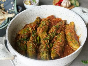 Turkish delight on a plate—tender roasted eggplant brimming with a savory filling of tomatoes, onions, and fragrant herbs. This timeless Turkish dish brings vibrant flavors right to your table. #happycookingtoyou #foodfusion #araywahh