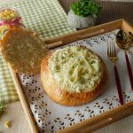 Bread bowl mein mac n cheese pasta,mozzarella cheese,parmesan cheese powder aur fresh parsley dal ker top sa cover ker dein.