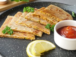 -Heat griddle on medium flame,place naan (wet side down) & cook on low flame for 30 seconds then flip the griddle & cook other side directly on the flame until it turns brown or charred.