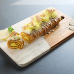 -Trim edges,add & spread prepared filling & roll out dough sheet into a Swiss roll shape & refrigerate for 30 minutes.