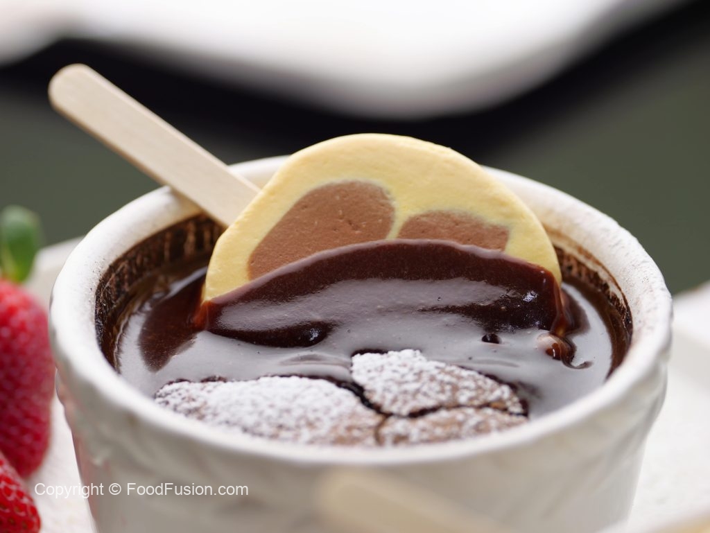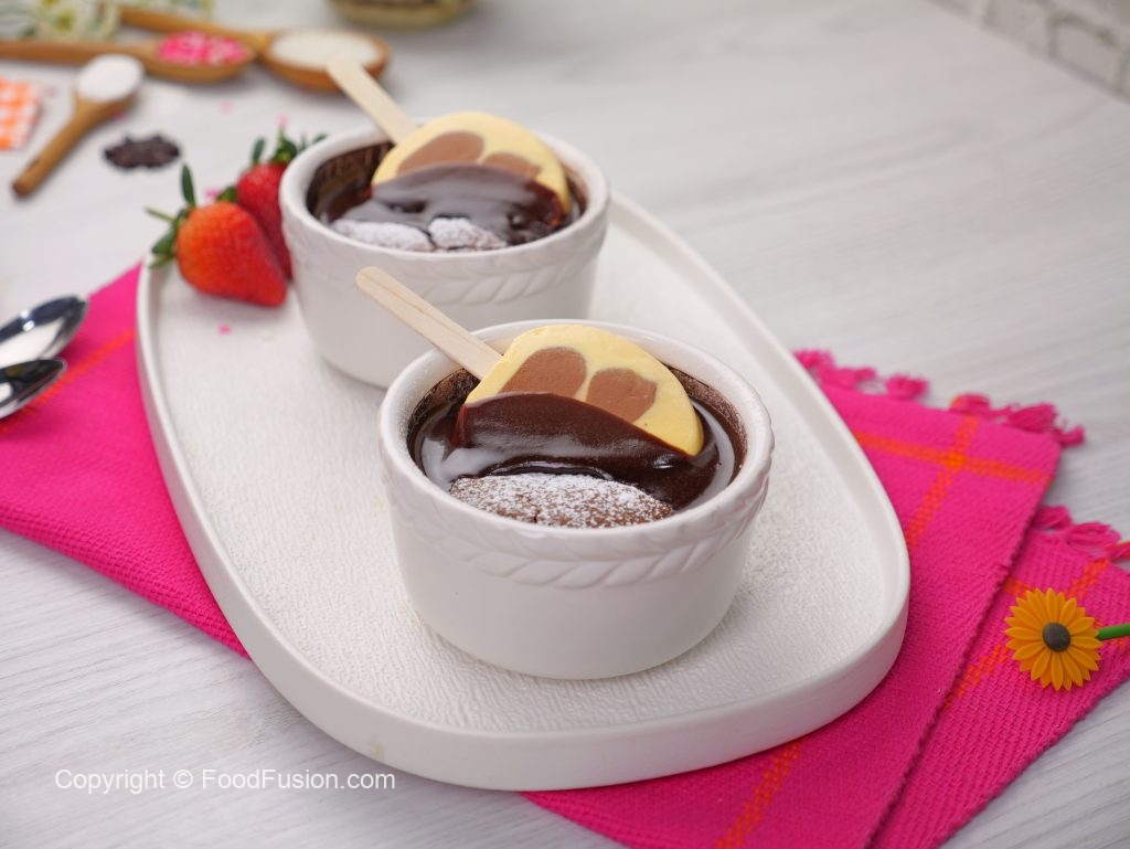 -Grease ramekin (4oz) with butter,add cocoa powder,dust excess & set aside.