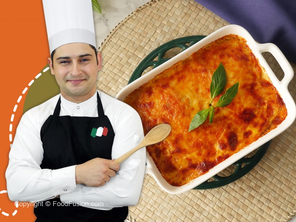 Baking dish mein tayyar tomato sauce,fried baingan slices,tayyar tomato sauce,mozzarella cheese, parmesan cheese,fresh basil leaves,fried baingan slices,prepared tomato sauce,mozzarella cheese aur parmesan cheese dal dein.