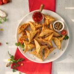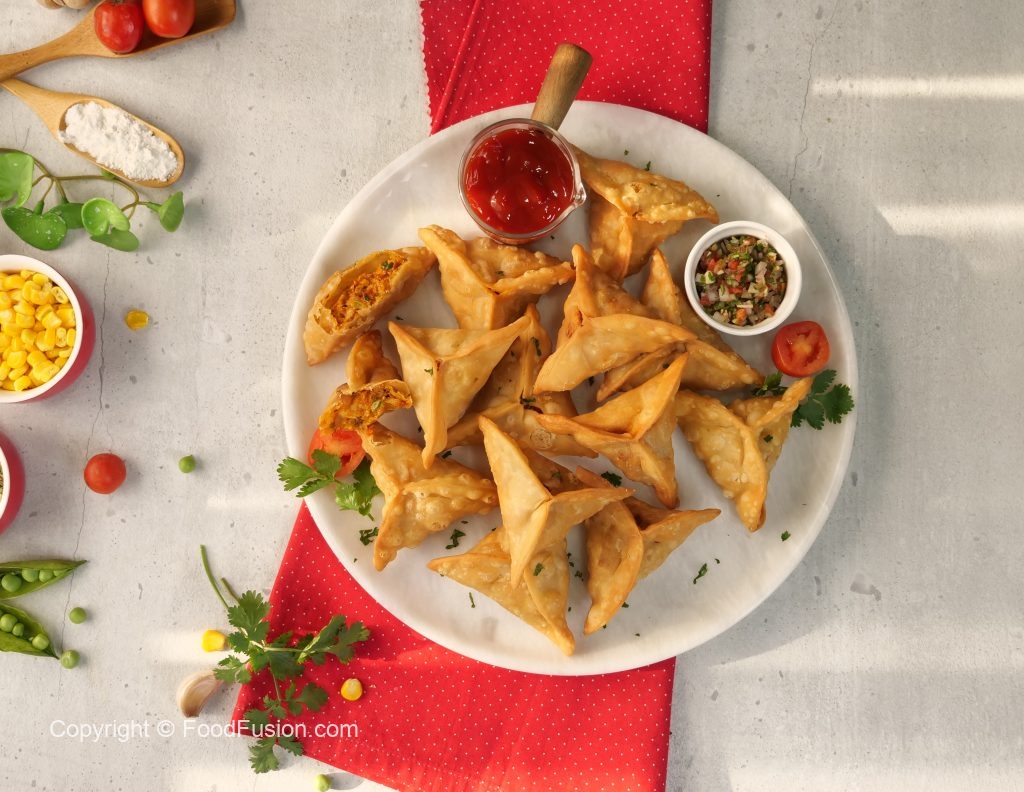 -Add prepared filling,apply water,fold & seal corners to make a samosa (makes 25-30).