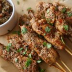 Thread chicken strips into skewers and apply grinded tomato mixture on chicken skewers & reserve half grinded tomato mixture for serving.
