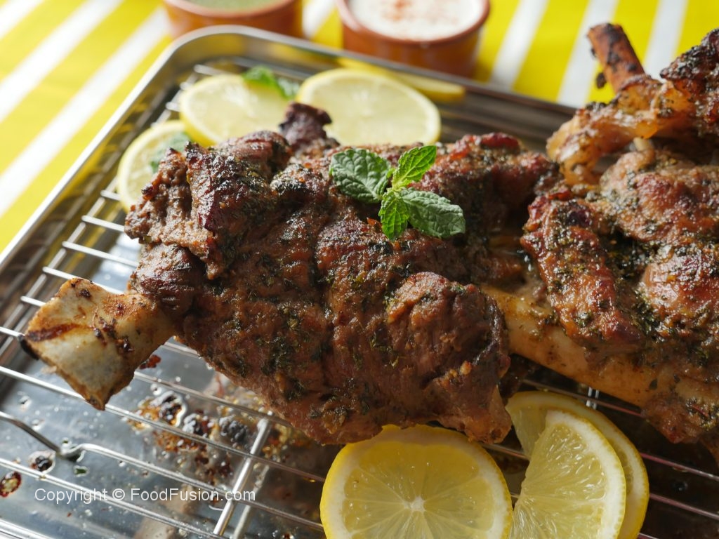 Grill mutton leg in preheated oven at 200 C  for 10-12 minutes or until golden brown color appears.