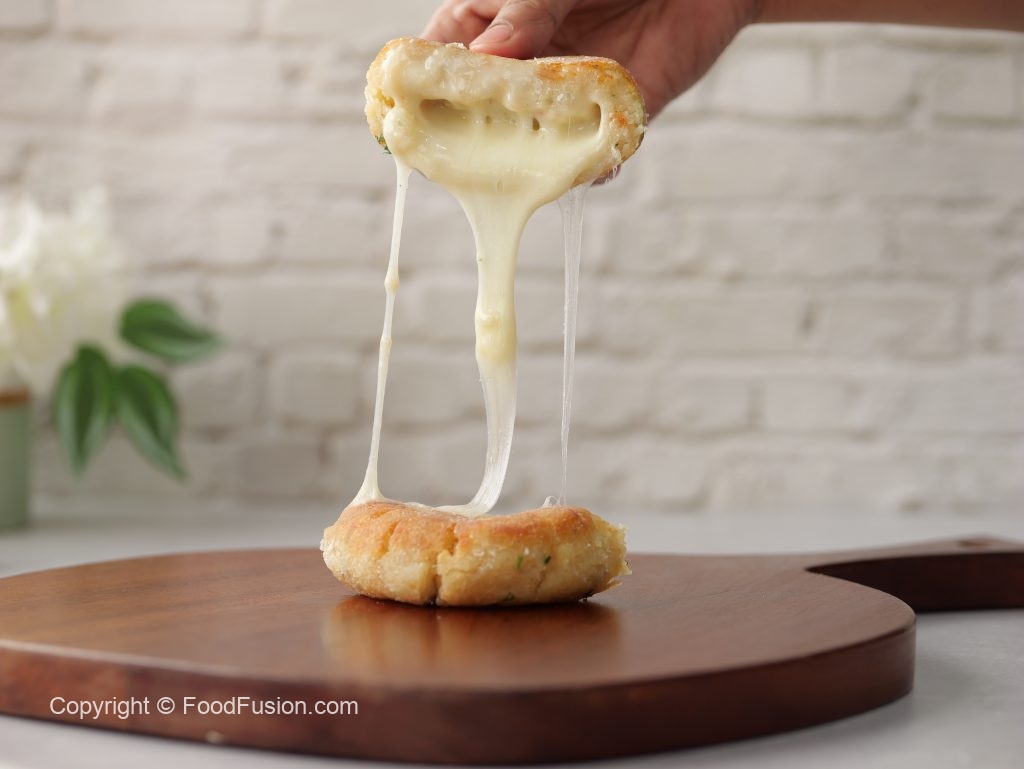 -Add mozzarella cheese & wrap the cling film to make a thick pancake shape.