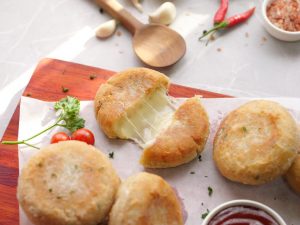 -Add rice flour,cornflour,black pepper powder,garlic powder,chicken powder,red chillies,onion powder, pink salt,fresh parsley & mix well while the potatoes are still hot.