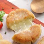 -Place potato ball on a flat surface lined with cling film & spread the mixture.