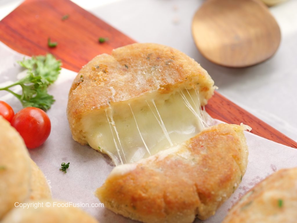 -Mozzarella cheese dal dein aur cling film ko warp ker ka thick pancake ki shape bana lein.
