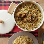 Add reserved ground spices,fried onion,boiled rice,fried onion and remaining reserved ground spices, cover and steam cook for 8-10 minutes.