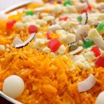 -Garnish with khoya,tutti fruiti,almonds,pistachios,dried coconut,cham cham & serve!