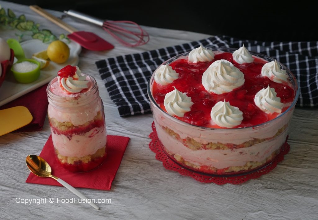 Enjoy this strawberry Angle Fruit Cake Dessert this weekend. Thanks to Fauji Fresh n Freeze we can now enjoy good quality fruits even off season. #FaujiFreshnFreeze #FreshnFreeze #HappyCookingToYou #FoodFusion