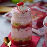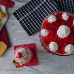 Garnish with reserved whipped cream & prepared strawberry jello.