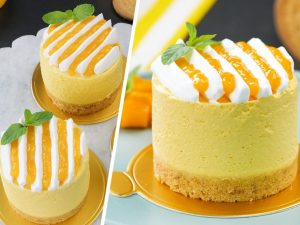 Now add cheese mixture and fold gently with the help of the spatula.