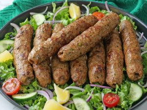 In a bowl,add beef mince,reserved chopped onion ½ cup (reserve ½ Cup for yogurt sauce),reserved chopped tomatoes ½ cup (reserve ½ Cup for yogurt sauce),ginger garlic paste,salt,cumin powder, paprika powder,black pepper powder,red chilli powder,breadcrumbs,egg,lemon juice,fresh coriander,mix well & marinate for 2-3 hours.