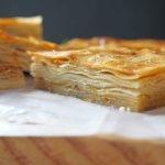 -Apply butter & oil mixture,add & spread chicken filling,place another rolled dough,similarly makes 8 layers.