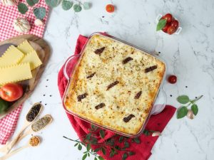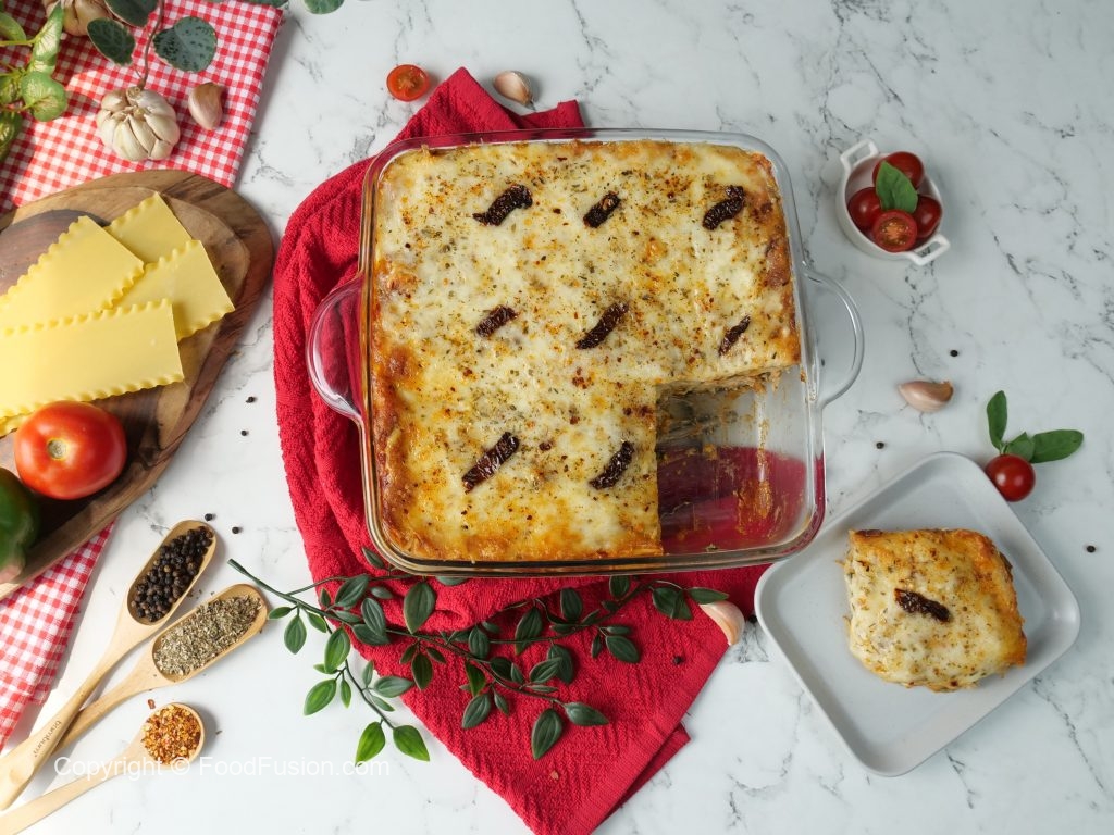 -Baking dish mein pizza sauce dal ker pheela lein,lasagna sheets,pizza sauce,tayyar tuscan chicken sauce,cheddar,cheese,mozzarella cheese,lasagna sheets,pizza sauce,tayyar tuscan chicken sauce, cheddar cheese,mozzarella cheese,lasagna sheets,pizza sauce,tayyar tuscan chicken sauce,cheddar cheese,mozzarella cheese,dried oregano,red chilli crushed & sundried tomatoes dal dein.